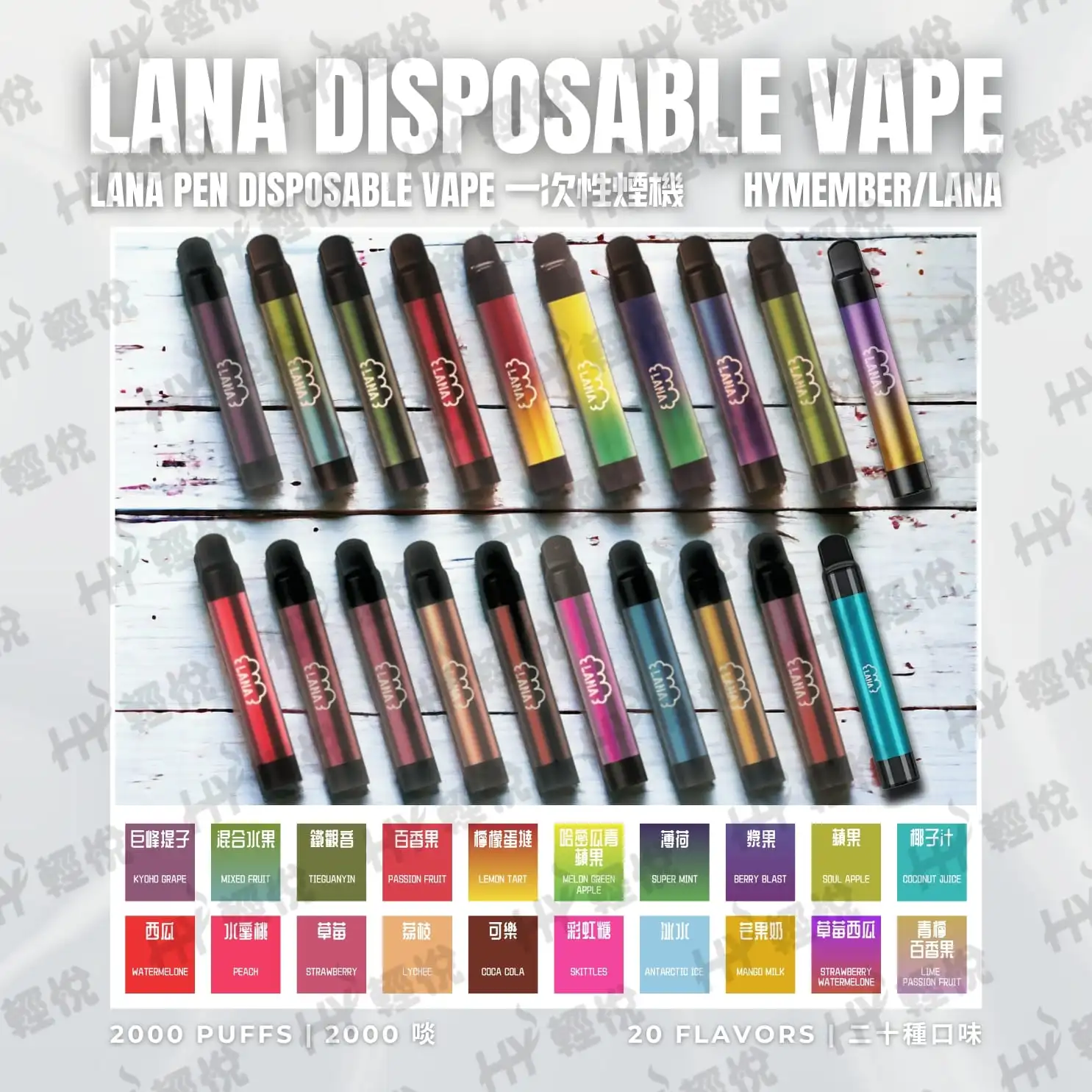 • 多種口味選擇: LANA 電子煙提供多種口味選擇,從經典的煙草口味到清新的水果口味,滿足你的不同喜好。